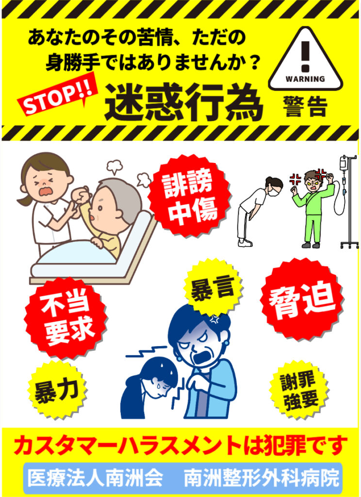 南洲整形外科病院では下記のような迷惑行為があった場合、診療をお断りする